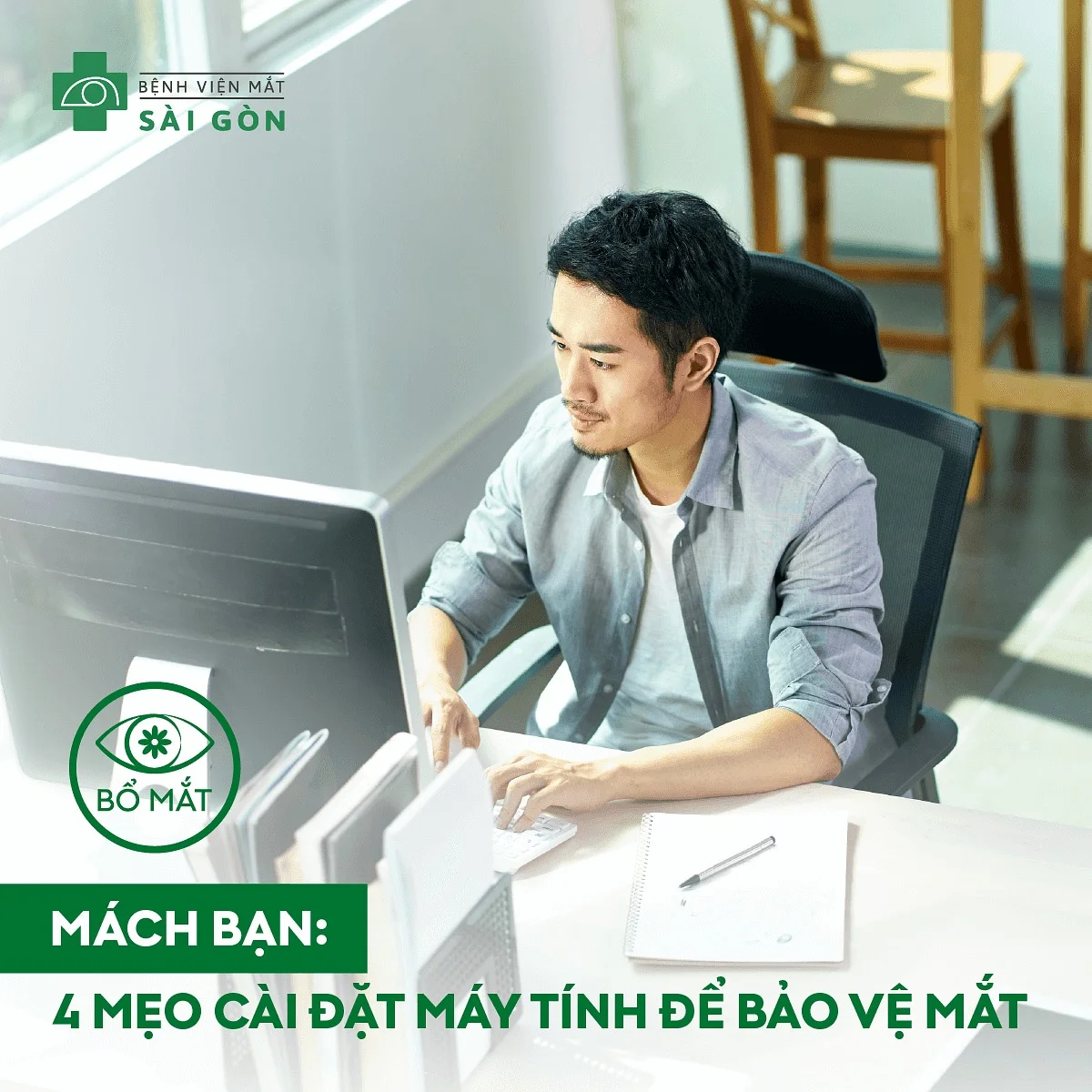 MÁCH BẠN NHỮNG MẸO CÀI ĐẶT VÀ LÀM VIỆC VỚI MÁY TÍNH ĐỂ BẢO VỆ MẮT