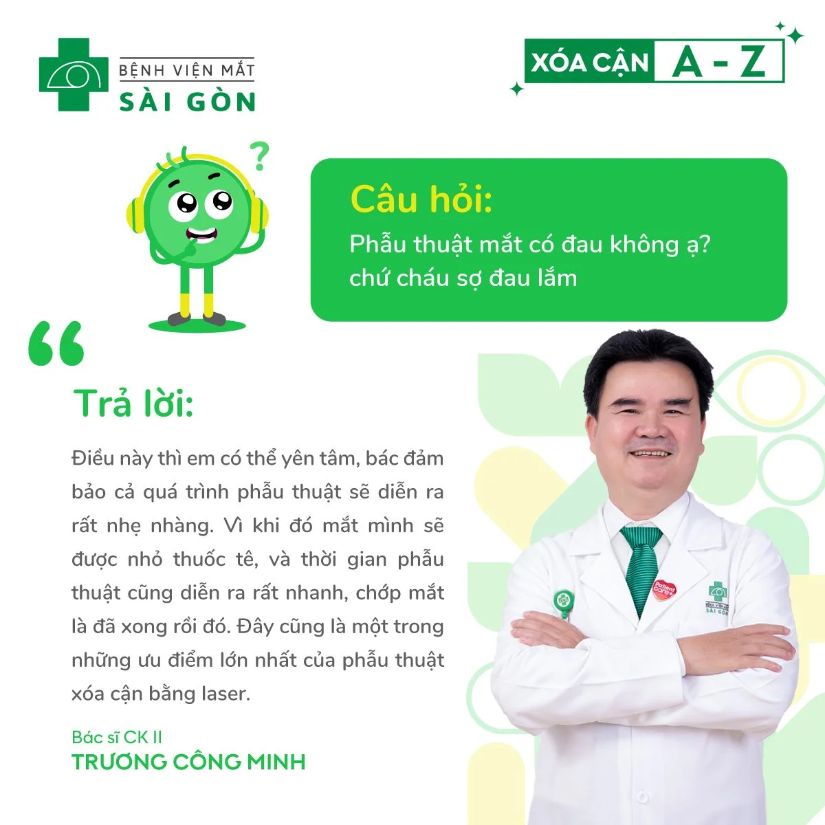 GIẢI ĐÁP TẤT TẦN TẬT NHỮNG CÂU HỎI THƯỜNG GẶP VỀ PHẪU THUẬT XÓA CẬN CÙNG ĐỘI NGŨ “BÁC SĨ DỄ HIỂU” CỦA MẮT SÀI GÒN